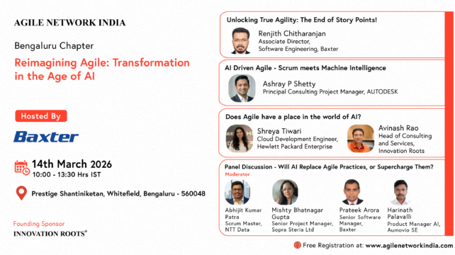 Agile Network India is organizing an In-Person event on “Reimagining Agile: Transformation in the Age of AI”. The event will be held on 14th March, 2026 at @Bengaluru. To be a Speaker, share your proposal here: “ANIn: Call for Proposal” To be a Panelist, share your interest here: “ANIn: Call for Panelist” REGISTER Hosted by: