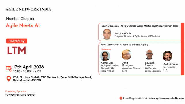 Agile Network India is organizing an In-Person event on “Agile Meets AI”. The event will be held on 17th April, 2026 at @Mumbai.