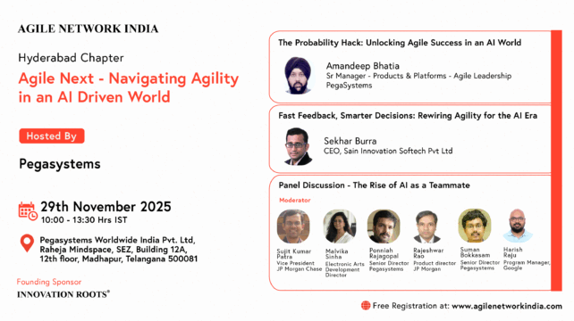 Agile Network India is organizing an In-Person event on “Agile Next – Navigating Agility in an AI Driven World”. The event will be held on 29th November, 2025 at @Hyderabad.