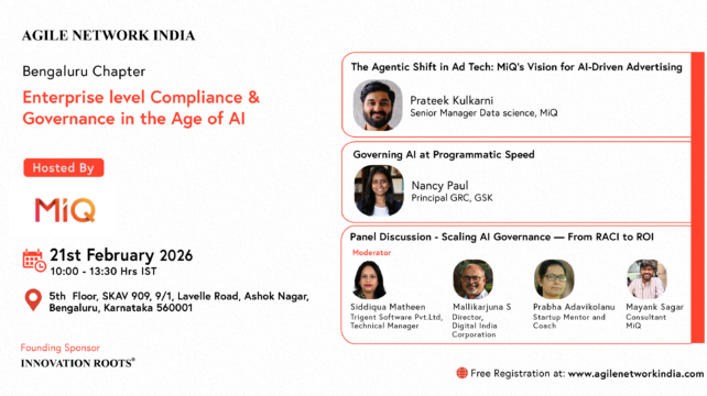 Agile Network India is organizing an In-Person event on “Enterprise level Compliance & Governance in the Age of AI”. The event will be held on 21st February, 2026 at @Bengaluru.
