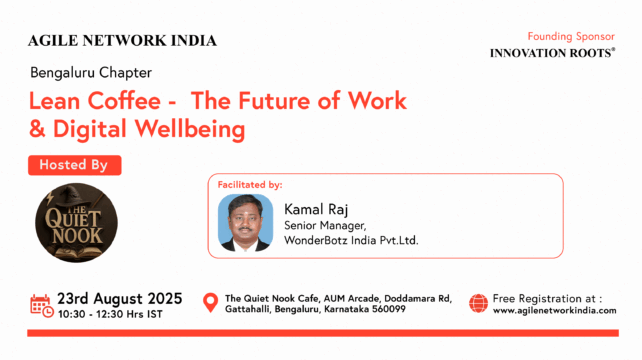 Agile Network India is organizing an In-Person event on “Lean coffee – The Future of Work & Digital Wellbeing”. The event will be held on 23rd August, 2025 at @Bengaluru.