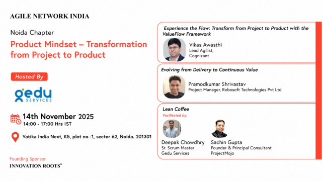 Agile Network India is organizing an In-Person event on “Product Mindset – Transformation from Project to Product”. The event will be held on 14th Nov, 2025 at @Noida.